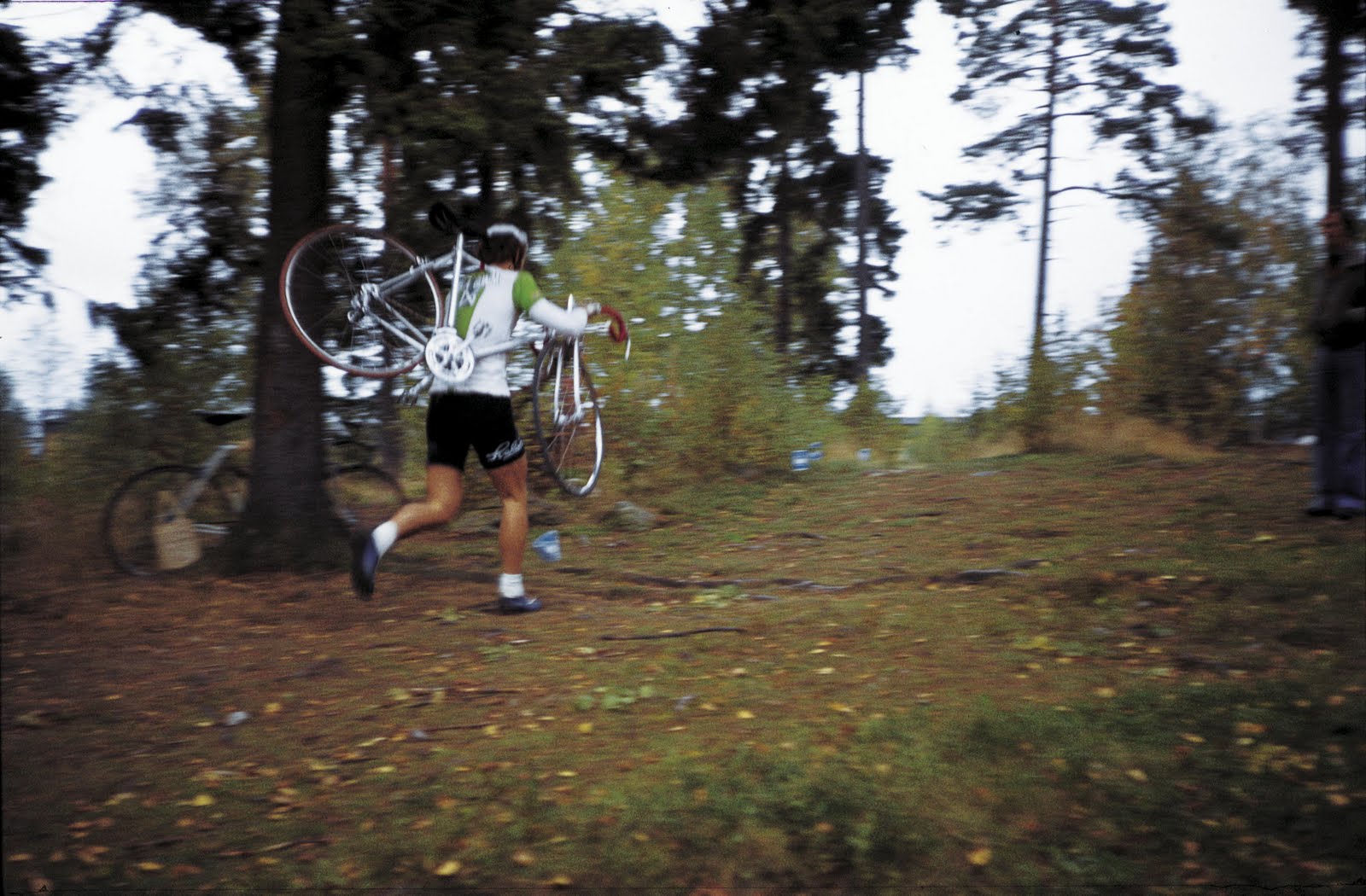 Härliga bilder på en cyclocrosstävling tidigt 70-tal i Rinkeby, Roine Grönlund i FaluCK fina tröja.