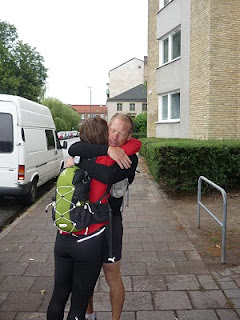 Björn i mål på 51 timmar 17 minuter. Jag och Zingo mötte upp honom o Kristina ca 5 km från stan, då gick det sakta...sen började han jogga lite sista 3 km och avslutade med en helt galen spurt sista 400m.